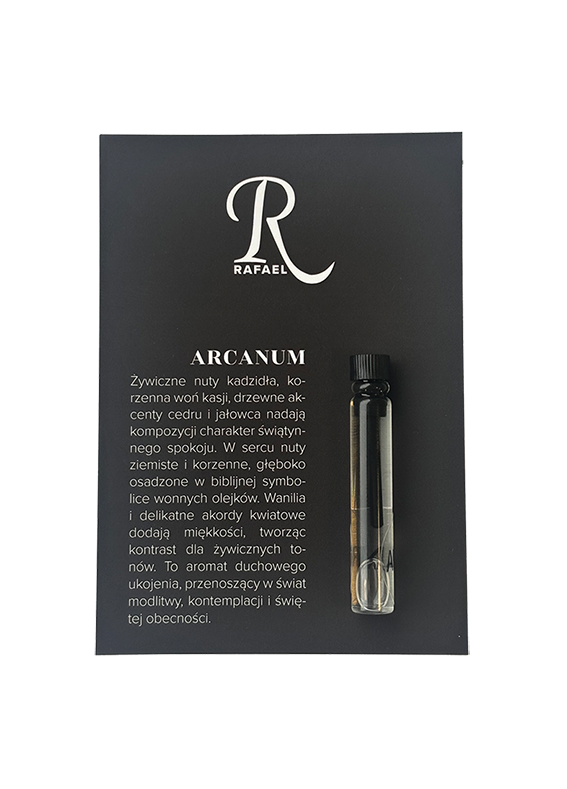 Żywiczne nuty kadzidła, korzenna woń kasji, drzewne akcenty cedru i jałowca nadają kompozycji charakter świątynnego spokoju. W sercu nuty ziemiste i korzenne, głęboko osadzone w biblijnej symbolice wonnych olejków. Wanilia i delikatne akordy kwiatowe dodają miękkości, tworząc kontrast dla żywicznych tonów. To aromat duchowego ukojenia, przenoszący w świat modlitwy, kontemplacji i świętej obecności.