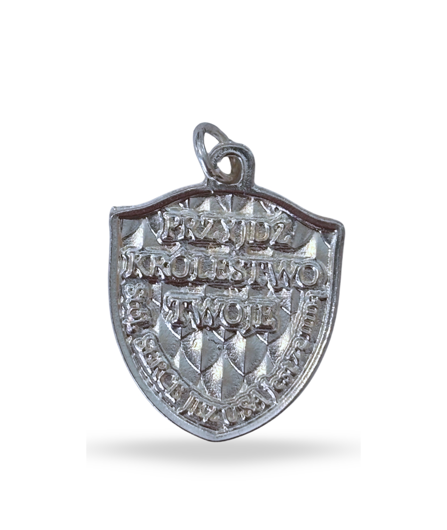 Dwukolorowy, posrebrzany medalik Tarczy Najświętszego Serca Pana Jezusa. Wykonany autorską techniką. Awers pokryty dodatkowo żywicą odporną na promieniowanie UV. Polecamy wszystkim, którzy mają szczególne nabożeństwo do Najświętszego Serca Pana Jezusa.
